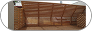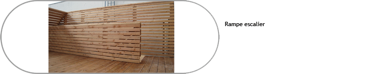 Afin d’éviter les vues directes sur les parcelles limitrophes, et de répondre au règlement d’urbanisme, un mur écran périphérique en lame de bois vient border la terrasse en limite de propriété et s’incline au besoin suivant le gabarit à 45° imposer dans le POS.
